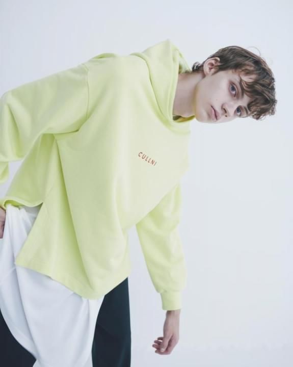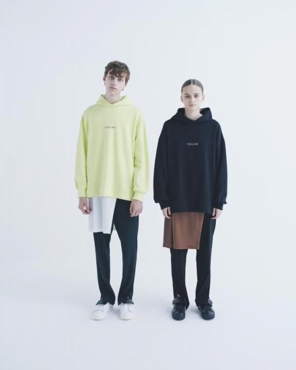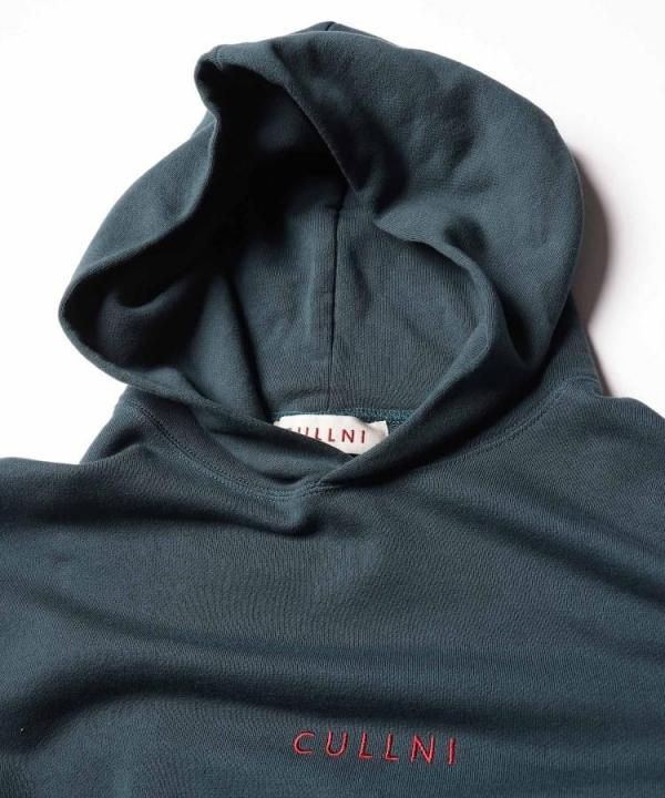 CULLNIのロゴパーカー。ゆったりとしたシルエット/裾のスリット等 シンプルながらも随所にこだわりを散りばめた1着。 程良い肉感の裏毛を使用。