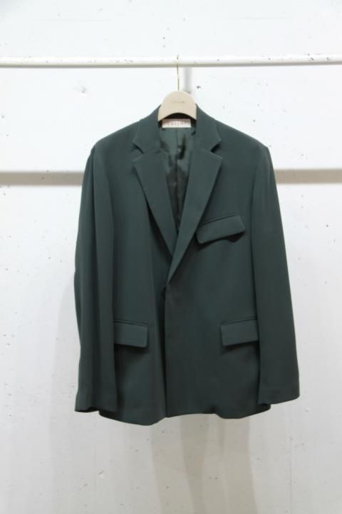 フロントボタンを比翼仕立てした、ミニマムなテーラージャケット。