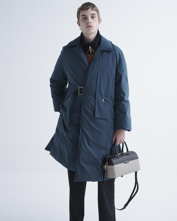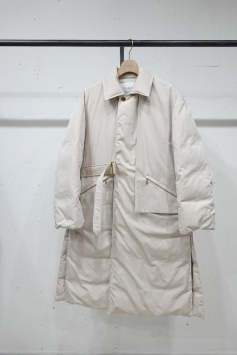 リモンタ社のタフタを使用したダウンコート。タイロッケンディテールとフラシ布がデザイン性の高い1着。