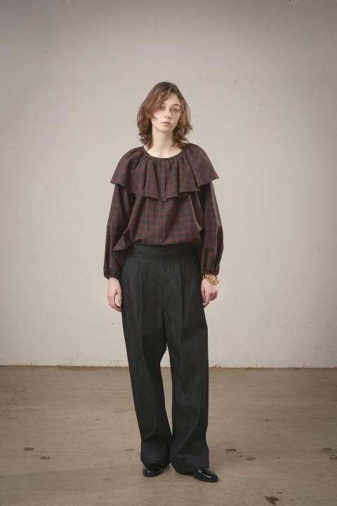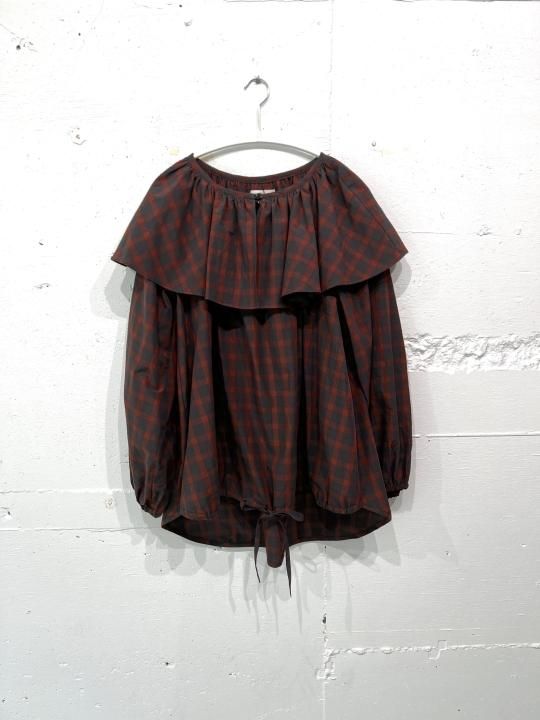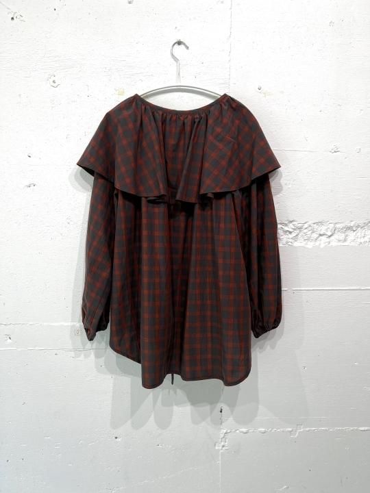 T.yamai paris コットンチェックラッフルカラーブラウス