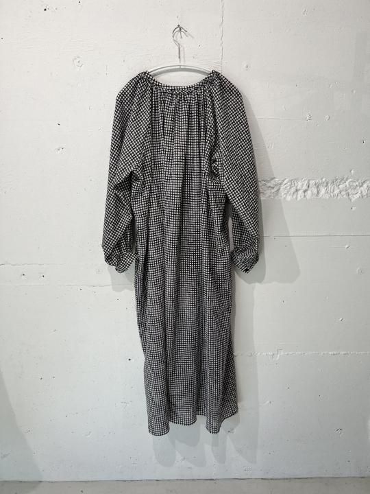 ソフトで軽く、表面のシワが特徴の素材にハンドプリント風なモノクロチェックを施した素材。