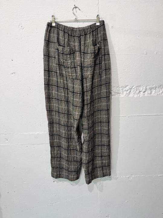シワ感のあるリネン混のチェック素材を使用したイージーパンツ。