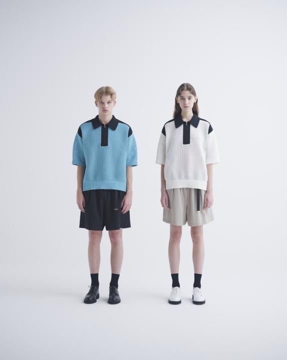 CULLNI Bi Color Mesh Knit Zip Up Polo Shirt