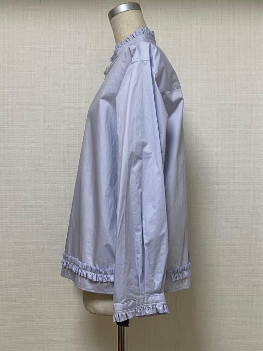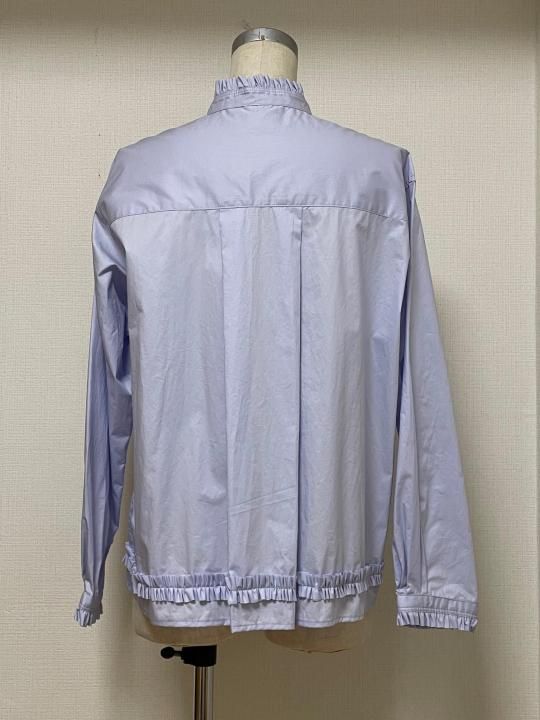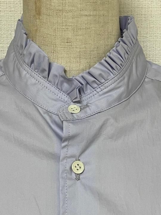 長袖ブラウス。スタンドカラー、袖口、裾部の2重